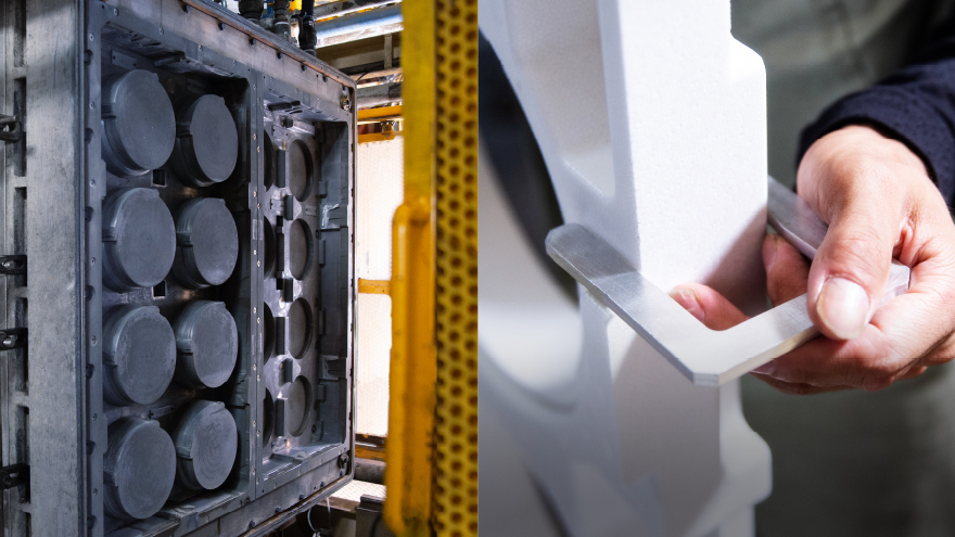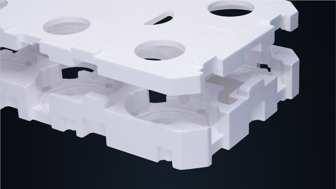 『ピオセラン』は、ポリスチレンとポリオレフィンをハイブリッド化した高機能発泡樹脂です。省資源性・軽量性に加え、耐衝撃性・耐薬品性・耐摩耗性などの特長を併せ持ち自動車部材や部品輸送梱包材として幅広く使用されています。